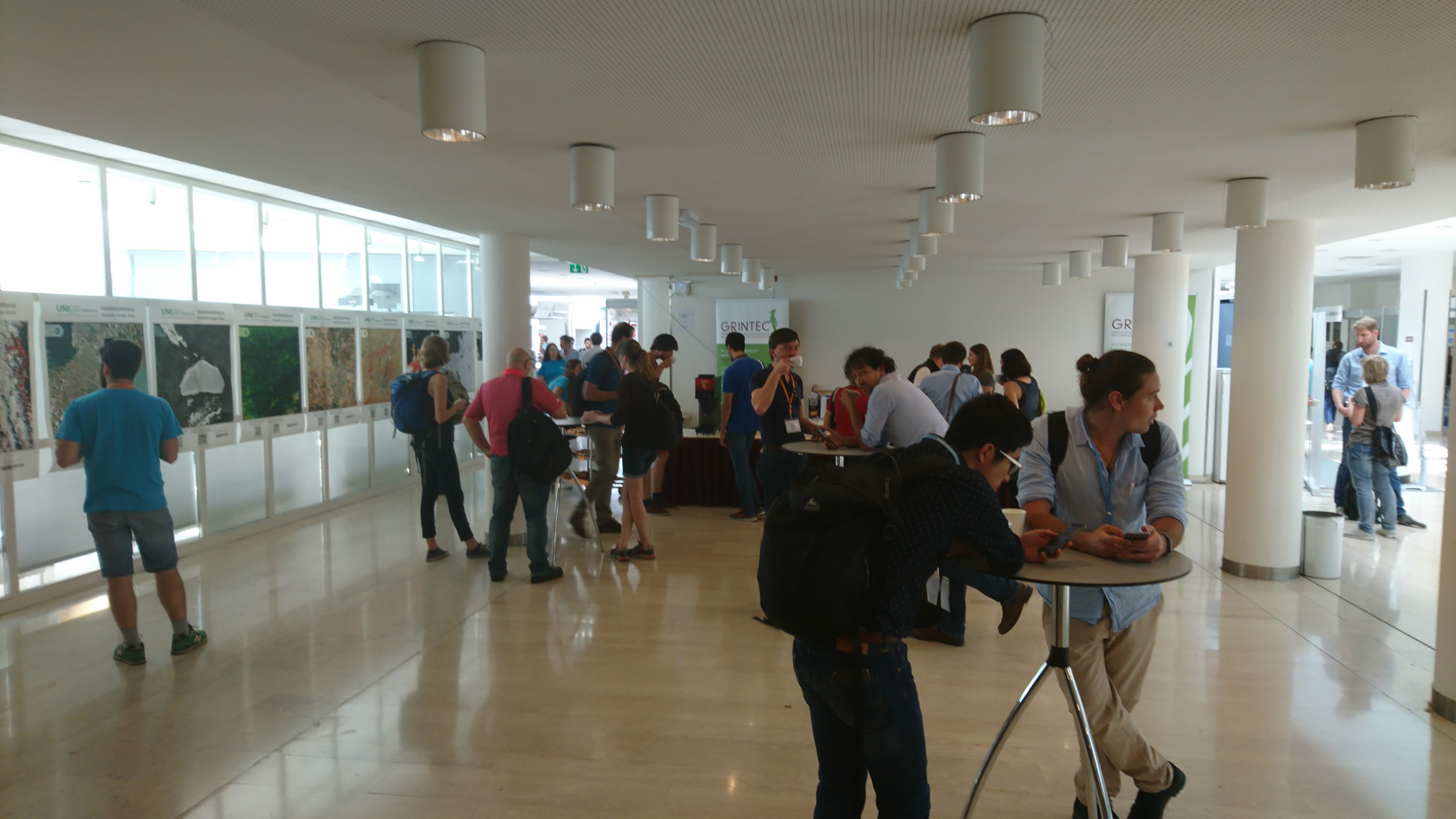 The influx of visitors during the lecture breaks was clearly noticeable, but with the support of Raphael DAS GUPTA from OSM-Switzerland (also present for all three days), it was well managed. Volker Wichmann and Olaf were available as contact persons for the SAGA GIS project. Anita Graser stopped by whenever possible for the QGIS project in the OSGeo area. Markus Schütz was able to present his project Potree for visualising laser scan data. Emmanuel Belo provided information about geOrchestra.