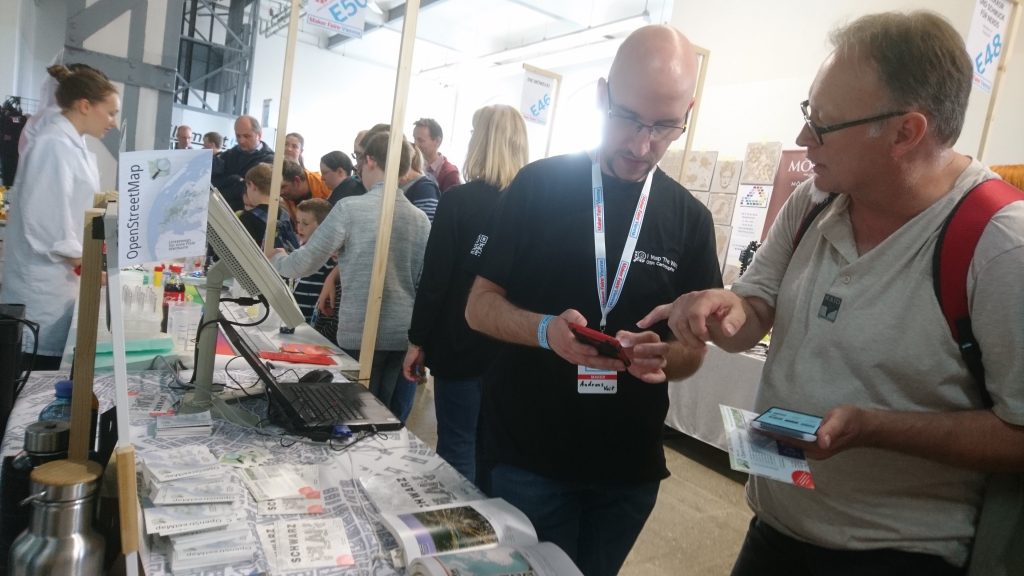 Interest and curiosity were aroused from the outset and we were asked a great many different questions. Since the Maker Faire is not an event from the GIS world, we were able to introduce the free world map to visitors who were unfamiliar with OpenstreetMap. It was very exciting to see that visitors who already use OSM learned from us that they can contribute data themselves. This led some of them to create an OSM account and fix the problems they had discovered themselves.